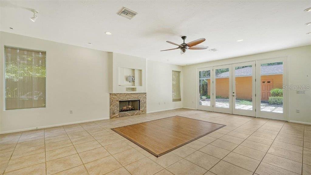 Tucked beneath a canopy of oak trees in the picturesque Indian Beach neighborhood, this unique two-story home offers the perfect blend of character, privacy, and location. Located just one block from the bay, you’re close enough to enjoy waterfront sunsets at the nearby park—but safely outside the flood zone. This property experienced no water intrusion during last year's major storms, offering peace of mind in every season. The main house features 3 bedrooms, 2.5 bathrooms, a flexible office/art studio, and a well-appointed kitchen with a professional-grade Southbend 6-burner gas range. The light-filled great room boasts 12' ceilings, a gas fireplace, and floor-to-ceiling French doors that open to a private courtyard—perfect for entertaining or quiet evenings at home. Upstairs, two bedrooms share a second living space, while the primary suite is privately tucked away with its own balcony. While the home has been well-loved over the years, it presents a wonderful opportunity for the next owner to bring their own updates and vision to life. A 2007 addition includes a two-car garage and a detached studio apartment with full bath—ideal for guests or multigenerational living. Indian Beach is one of Sarasota’s most charming historic neighborhoods, known for its blend of old Florida charm and modern homes, walkability, and proximity to top cultural destinations. You’re minutes from The Ringling Museum, Asolo Theater, Ringling College, and the Bay Park Conservancy waterfront. Downtown Sarasota, the airport, St. Armands Circle, and the beaches of Lido and Longboat Key are all just a short drive away. Don’t miss the opportunity to live in one of Sarasota’s most coveted and culturally rich neighborhoods—close to the water, but comfortably high and dry.